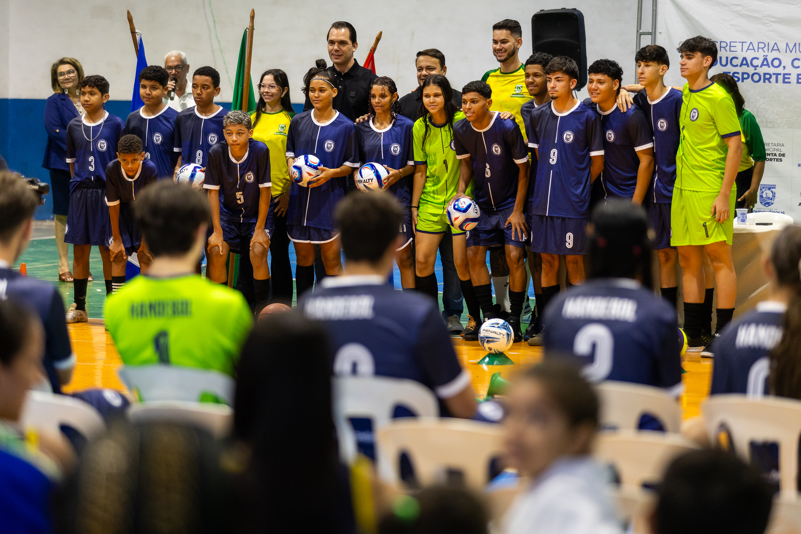 Prefeitura faz entrega de kits esportivos e uniformes para fortalecer polos de projeto e seleções estudantis