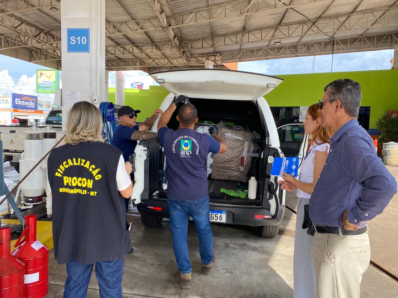 A Agência Nacional de Petróleo (ANP) e o Procon de Rondonópolis estão fiscalizando e notificando postos de combustíveis da cidade. A agência está aferindo a qualidade dos combustíveis: óleo diesel, gasolina e etanol, verificando a quantidade de litros e aferindo equipamentos como bombas e o recipiente que precisa indicar a qualidade do etanol, que fica ao lado da bomba. Já, o órgão municipal está solicitando informações sobre preços, em especial o repasse dos aumentos ao consumidor final e se o Código de Defesa do Consumidor (CDC) está sendo cumprido.