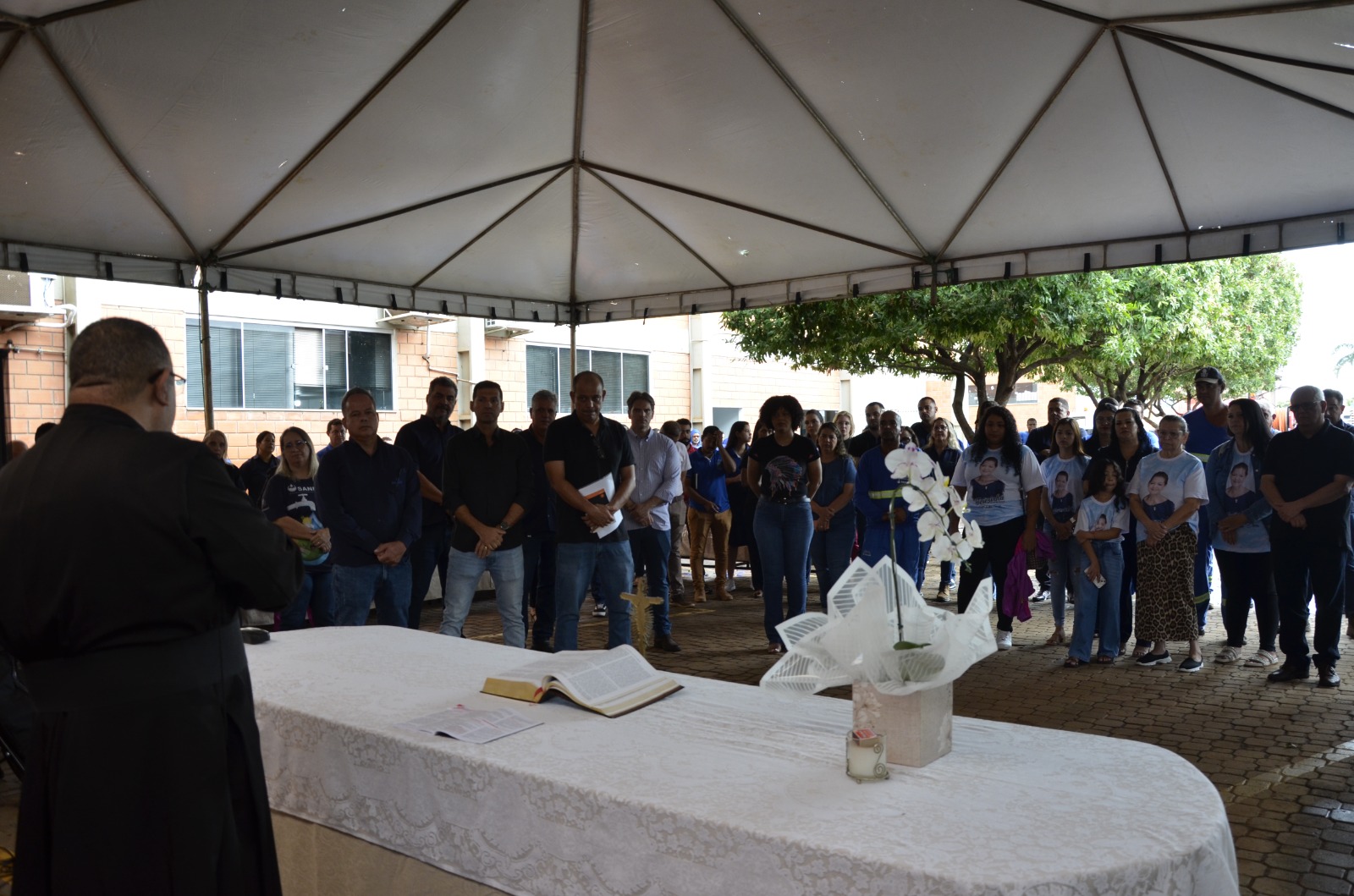 A cerimônia religiosa foi conduzida pelo padre Aladim Leodenis Loureiro e contou também com as presenças da primeira-dama, Neuma Morais, dos vereadores Kaza Grande e Batista da Coder, além de várias lideranças políticas, amigos e ex-servidores do Sanear.