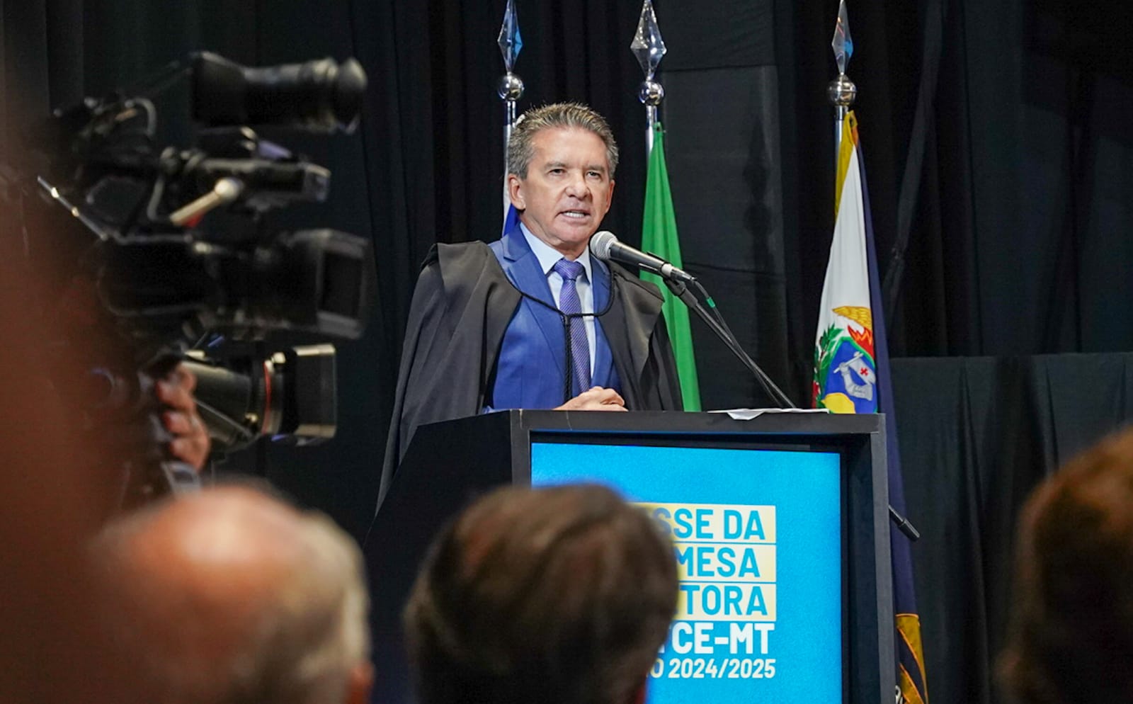 “Como presidente serei o mesmo de sempre, tranquilo, paciente e sereno. Gosto de jogar no ataque, avançando e, nesse caso, no sentido de ajudar. Sou um excelente ouvinte, com serenidade e respeito no trato com as pessoas e, assim, reitero meu compromisso de fé com todos aqueles que vivem aqui, com meu querido estado de Mato Grosso e a minha querida Cuiabá, com o exercício do controle externo como eficaz instrumento de fiscalização dos atos e atividades da administração pública e, o mais importante de tudo, como meio de justiça social”, declarou.