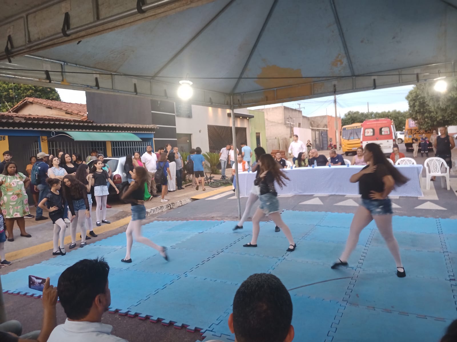 Durante a inauguração alunas da rede municipal realizaram uma apresentação cultural com numero de dança de rua...