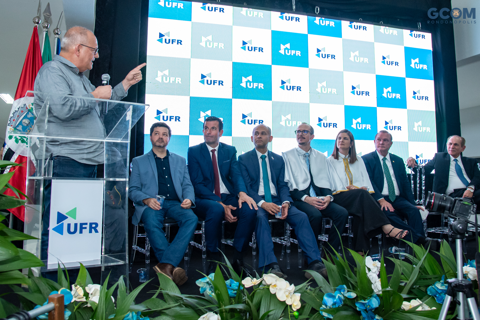 O reitor da Universidade Federal de Mato Grosso, Evandro Soares da Silva e o reitor da Universidade Federal de Jataí, Christiano Peres Coelho também participaram da cerimonia na UFR.