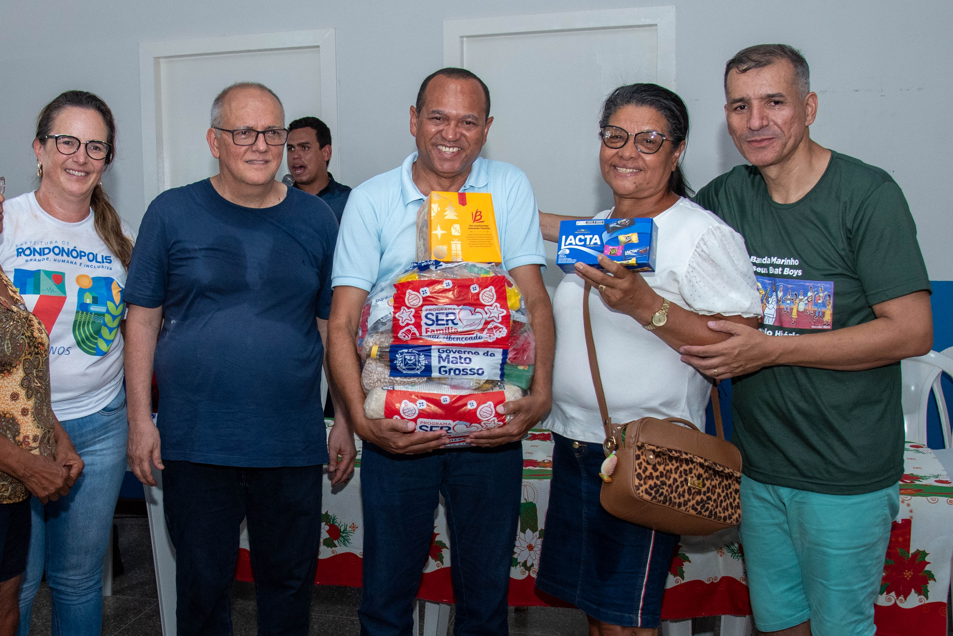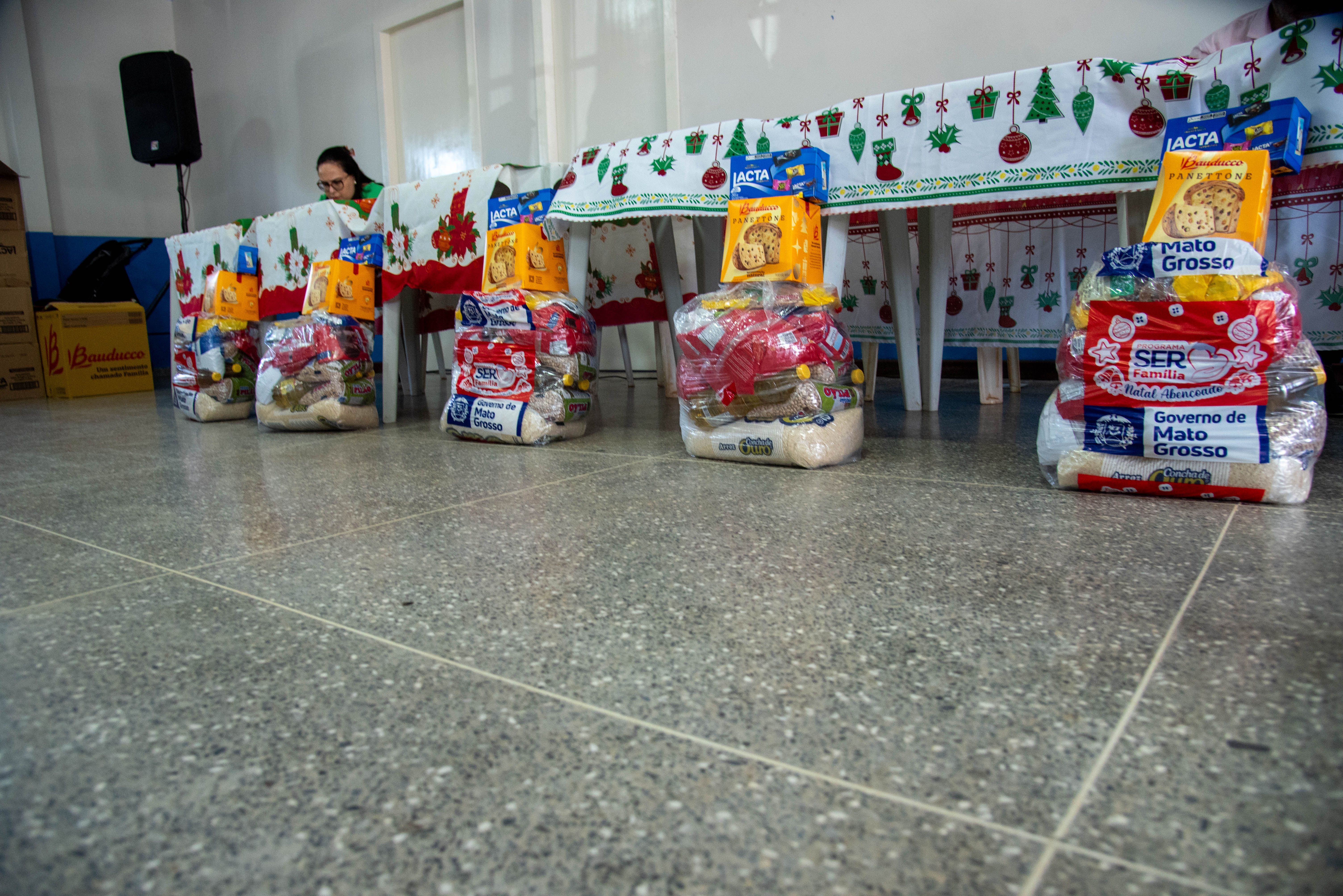 100 panetones e 100 caixas de chocolate.