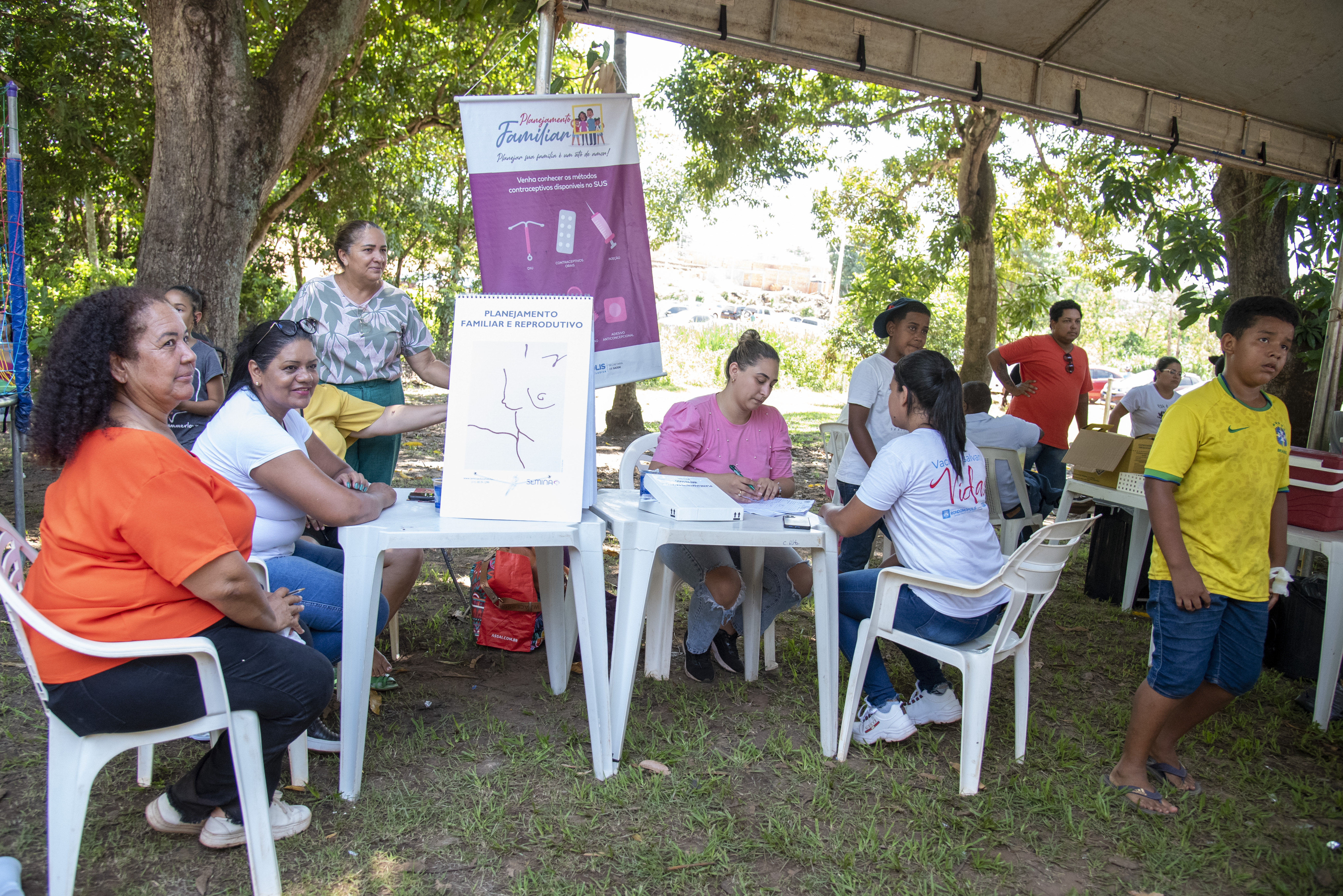 O feriado de aniversário foi de muita agitação e alegria na sede do Centro de Referência de Assistência Social (Cras) Alfredo de Castro onde foi montada a sede do mutirão. Crianças e adultos aproveitaram a equipe do município no bairro para receber atendimentos de saúde, atualizar e se cadastrar nos programas de assistência social e também se divertir com as atividades lideradas pelas equipes da Educação e do Esporte.